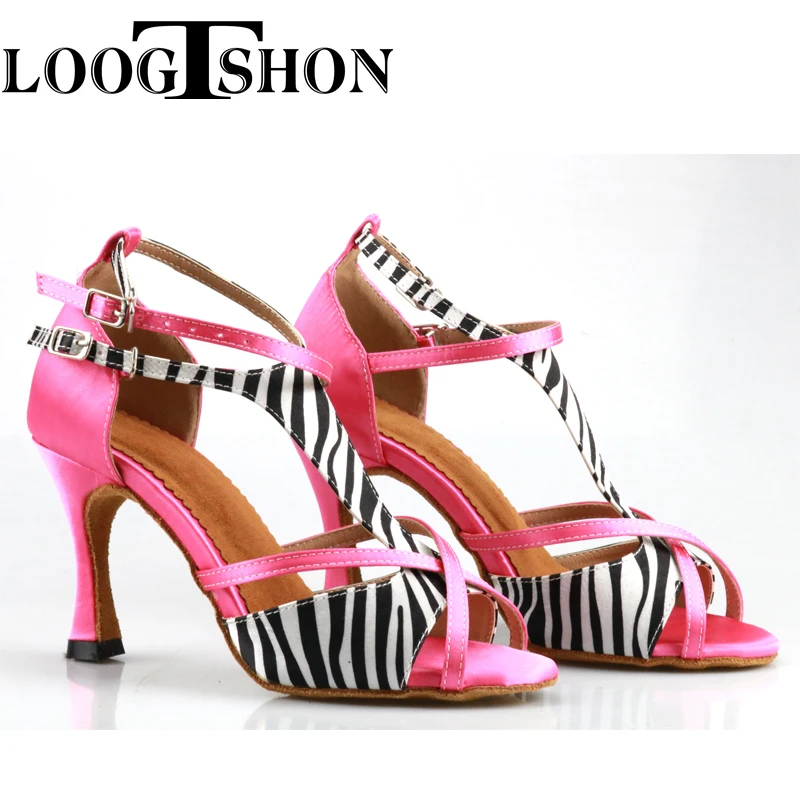 LOOGTSHON Latin Pink & Zebra High Heel Dancing Jazz Shoes