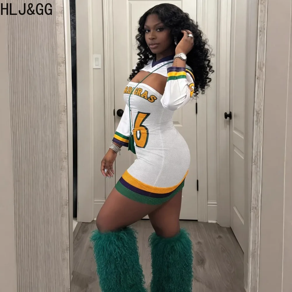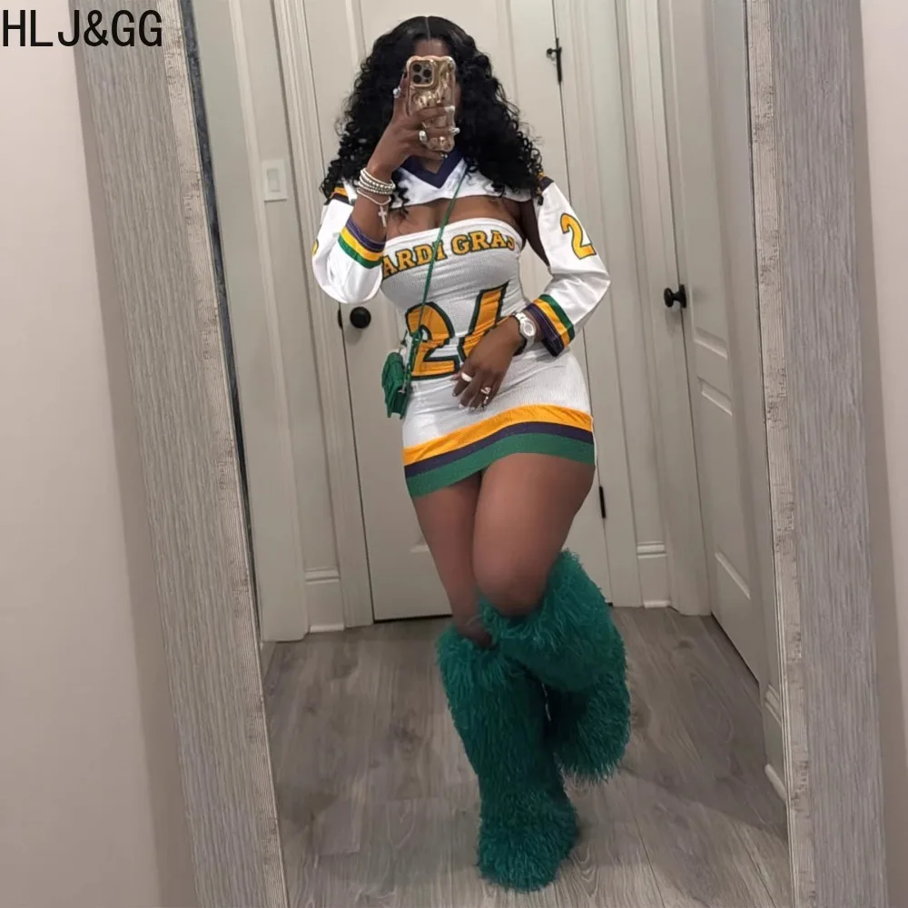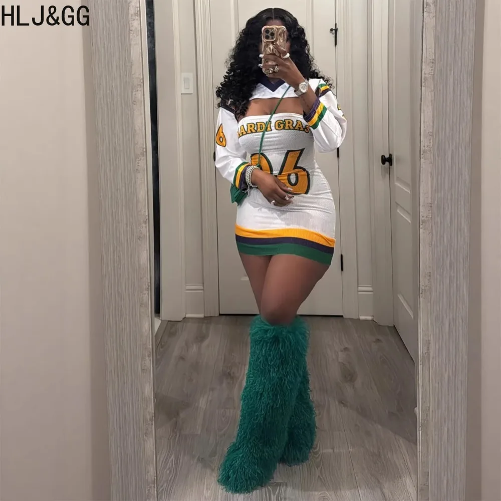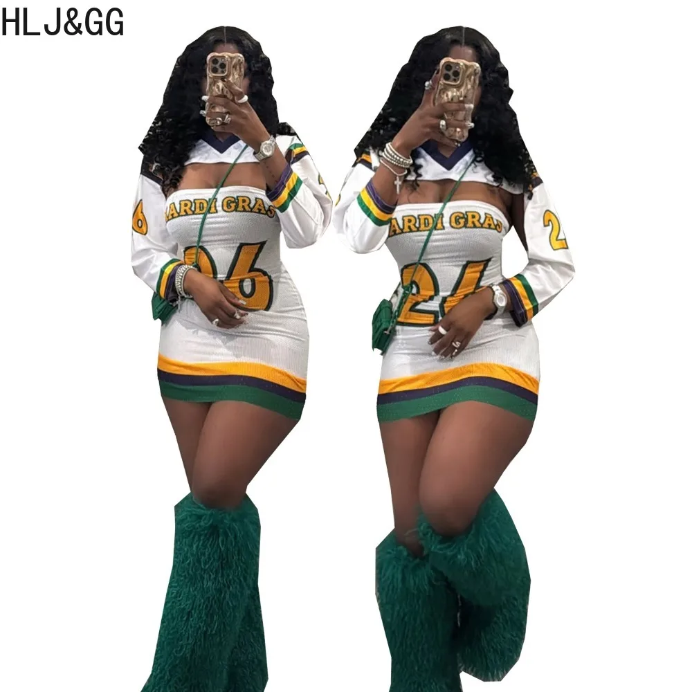 Women's Letter Print Mini Two Piece Long Sleeve Bodycon Dress Set