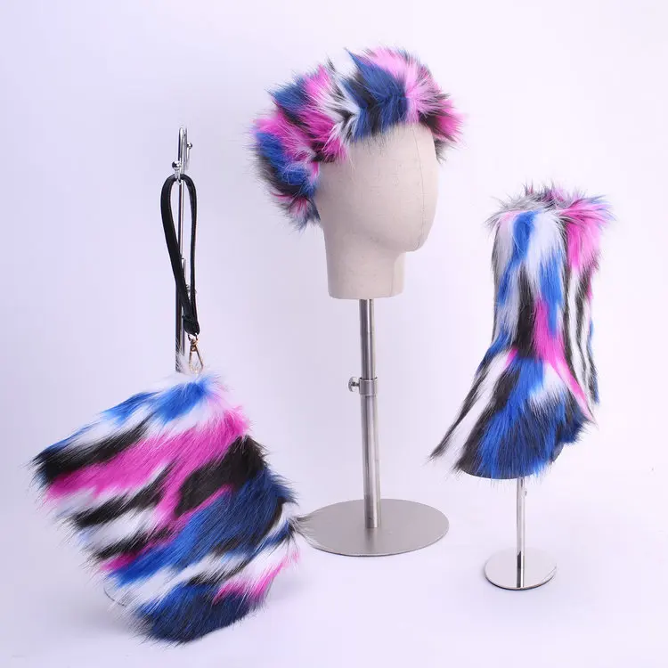 3 Pieces Purse Included Winter Snow Women Fur Boots Sets with Headband and Bag