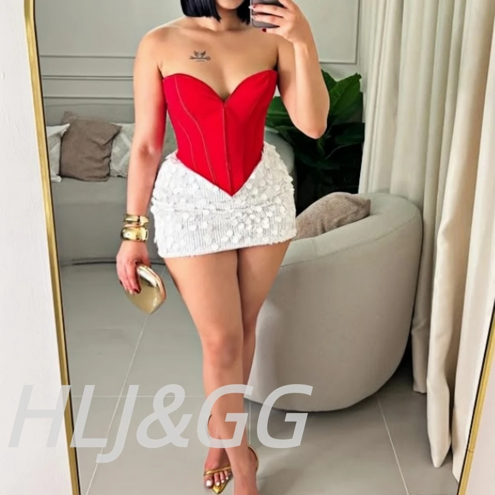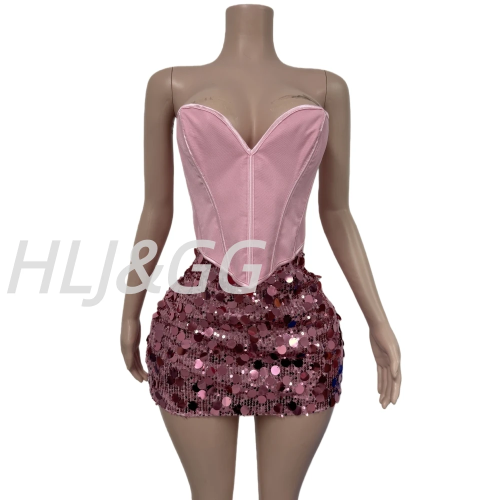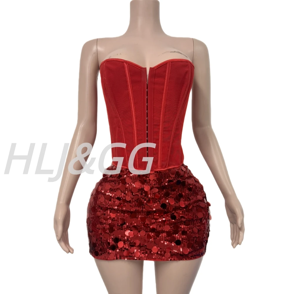 Sexy Off-Shoulder Two-Piece Corset Vest & Sequin Mini Skirt Set