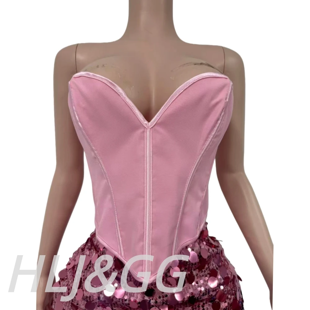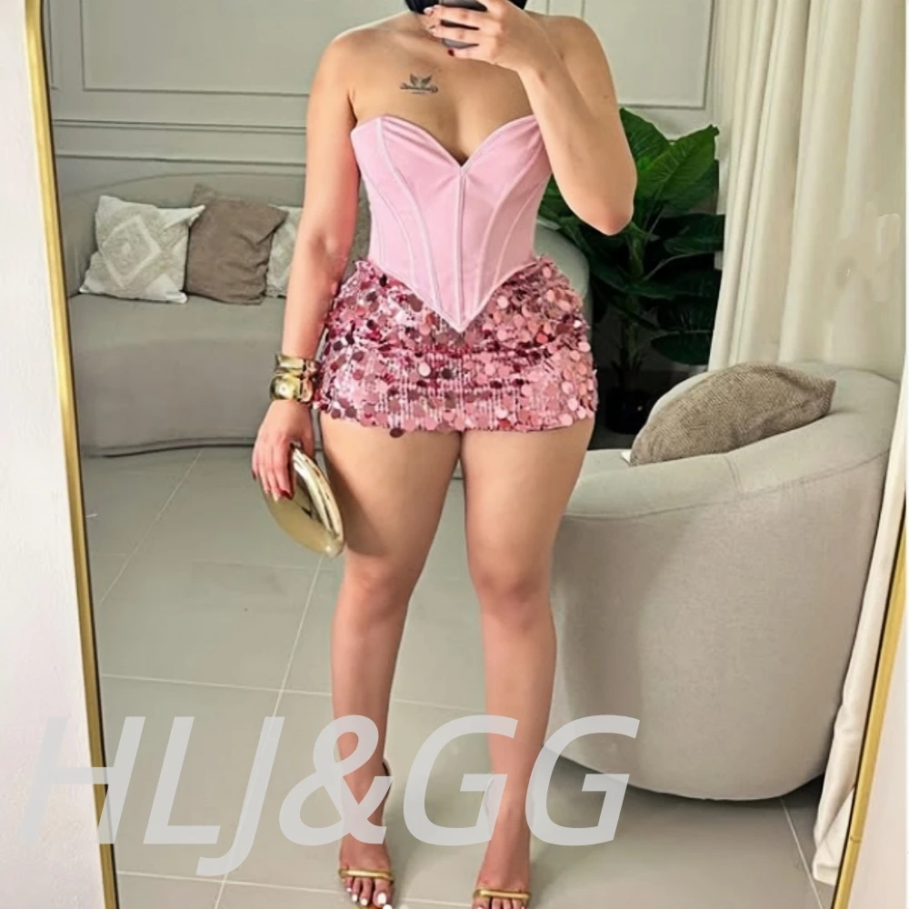 Sexy Off Shoulder Two Piece Corset Vest And Sequin Mini Skirt Set